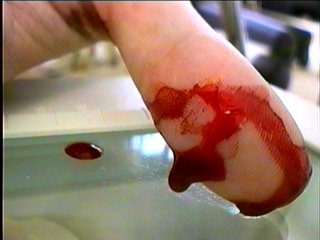oh, and those pix of blood up there...i cut myself trying to get the lid off of a sardine can. it actually didn't hurt. but it dripped a lot of blood and made me feel squeazy. i was in irc when it happened and btripp said "drip it on the scanner and scan it!" so..i did!